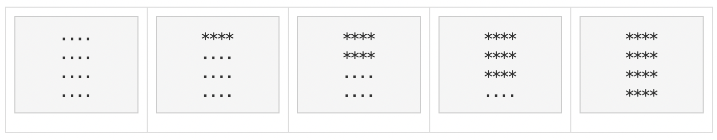 모든 창문은 4×4 그리드로 나타낼 수 있고, *를 이용해서 블라인드를 나타낸다. 상근이가 볼 수 있는 창문은 다음 5가지 상태 중 하나이다.